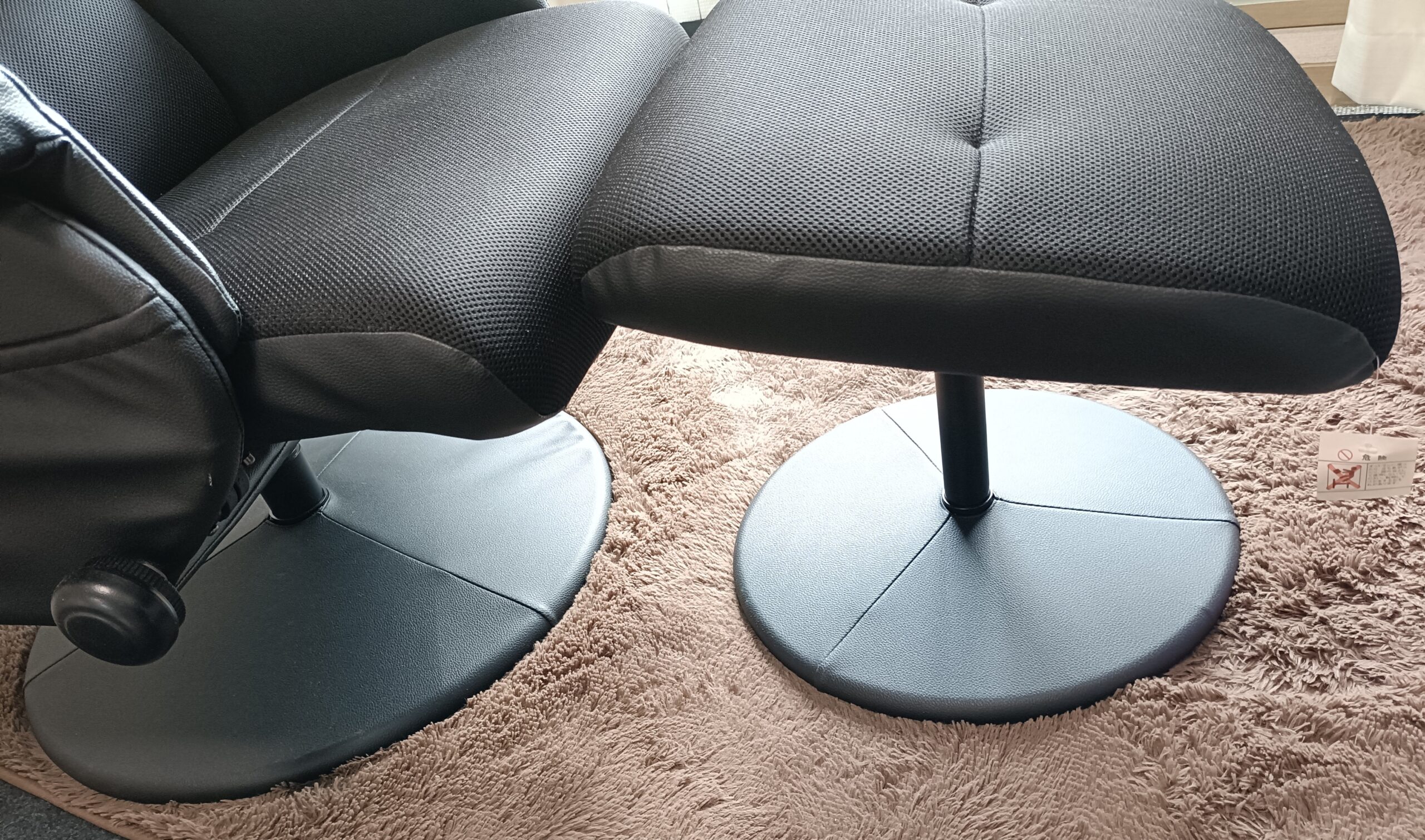 基本的に毎日使っていますが、割とコンパクトとはいえリクライニングとオットマンを展開すると距離が長くなる。