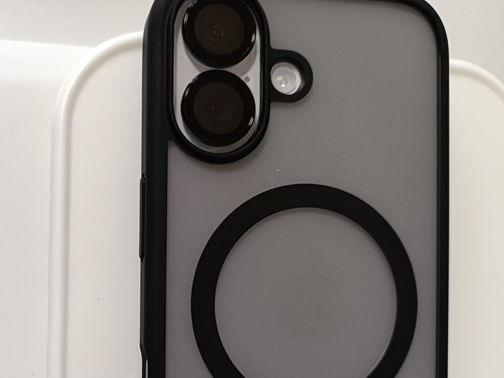 せっかくの美しいホワイトボディが、黒いカメラカバーのせいで台無しです。 結局、1,800円払って「クリア(透明)タイプ」を買い直す羽目になりました。