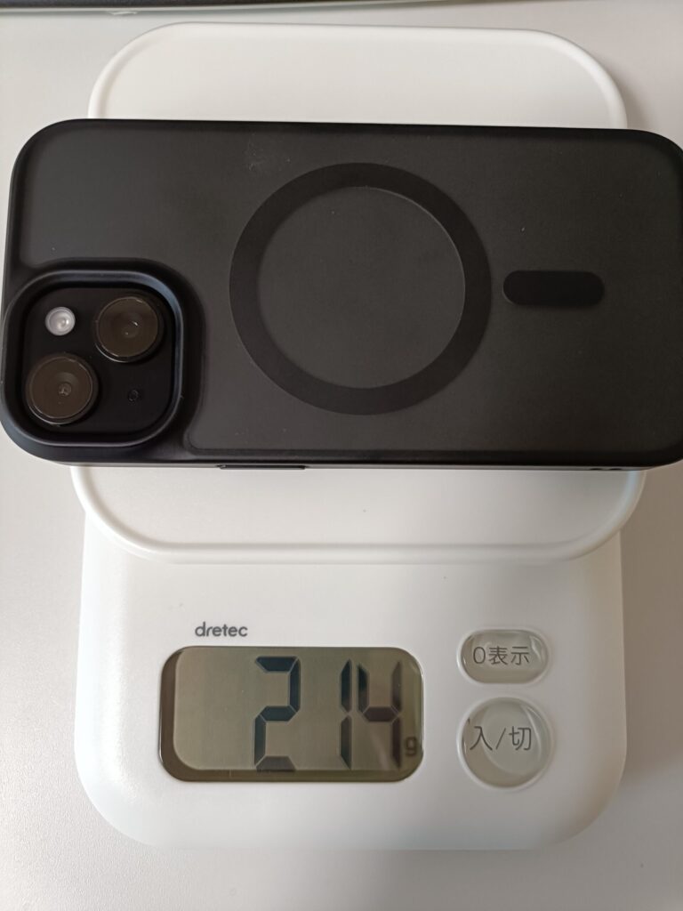 - iPhone 15(ブラック)+ケース:214g