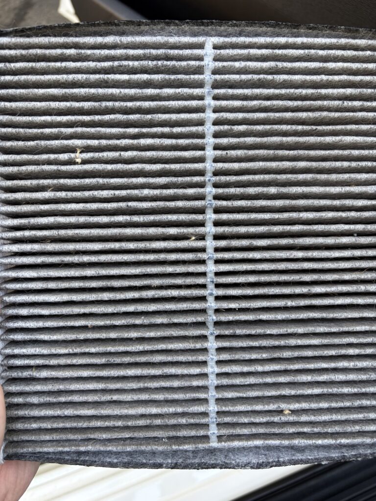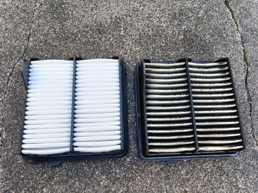 汚れた古いフィルターを見て、今までこの空気の中で運転をしていたのか、と少しゾッとしました。