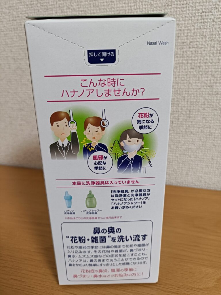 説明書にもありますが、注意点として上を向いて使用したり、洗浄後に鼻を強くかみすぎたりすると、中耳炎になる恐れがあるらしい。
