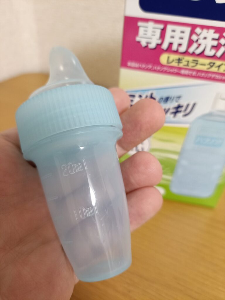 そして、説明書にもある重要なコツが「あー」と声を出しながら洗浄液を流し込むこと。