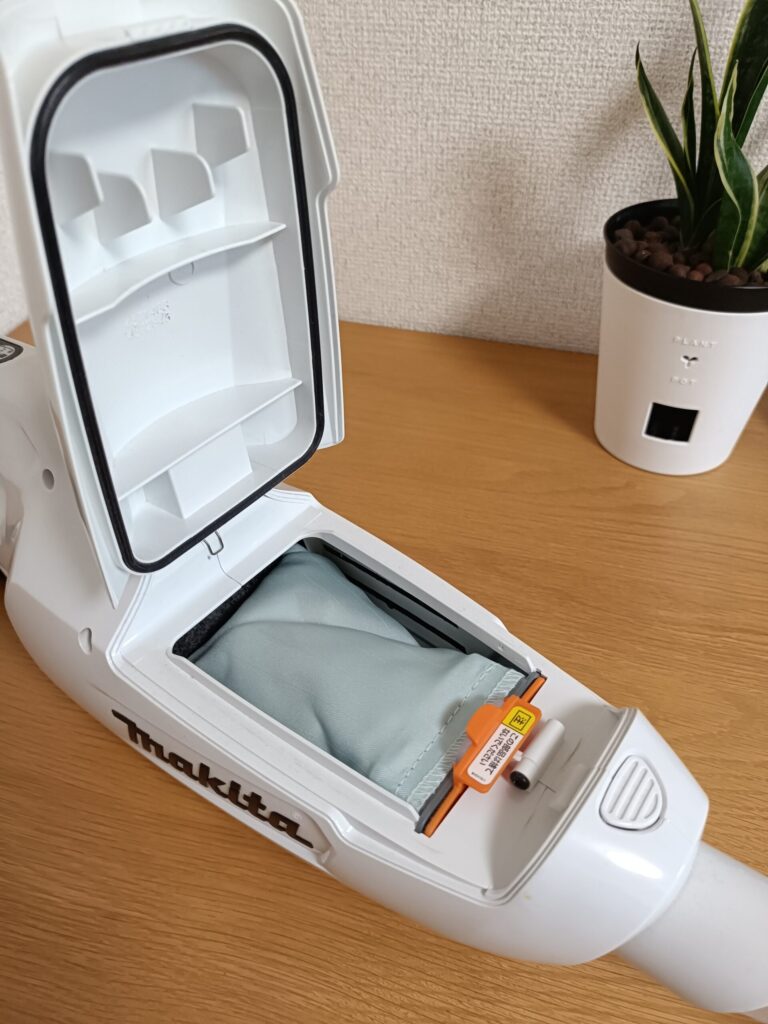 ゴミがいっぱいになったらポイッと捨てるだけなので衛生的で楽ちんなのですが、紙パックを買うコスト(1枚数十円程度)がかかります。 (※私は、マキタ 高機能不織布ダストバッグ 紙パック式クリーナ用を洗って使っています。吸引力も落ちないし、細かいホコリも通さないため快適!)